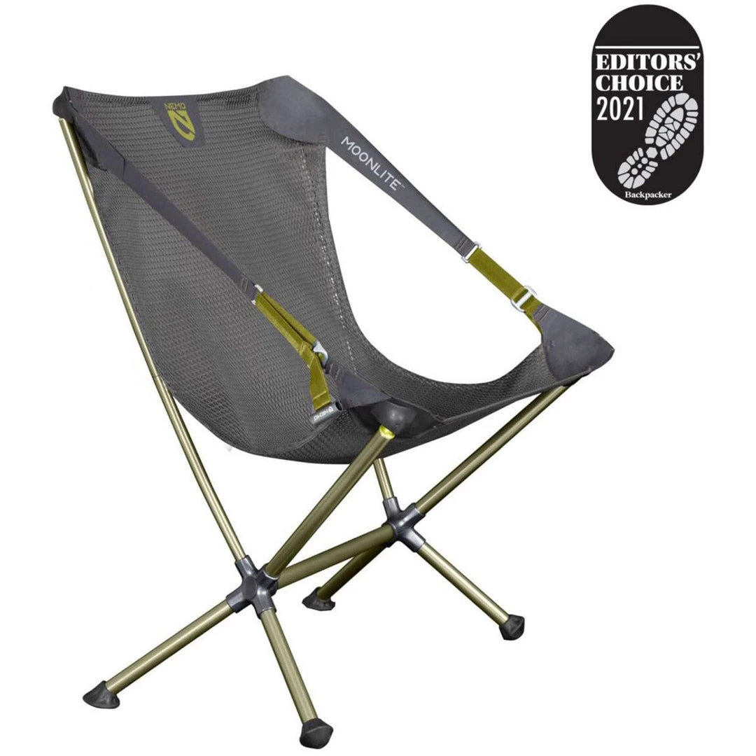 Take Moonlite™ into the backcountry and experience the feeling of weightlessness as you lean back under the stars. Easy to set up and barely noticeable in your pack, Moonlite™ is your go-to chair for every adventure from a picnic in the park to an extended backpacking adventure. Oversized tubes, paired with forged aluminum hubs, create exceptional strength and stability. And best of all, Moonlite is the only chair of its kind with an adjustable seating position, making it ideal for dining or reclining. The exceptional comfort of the Moonlite™ chair comes from a custom engineered, asymmetrical mesh that stretches to accommodate and support a variety of body types without needing seams. This unique seamless seat attaches to the frame with y molded, ball-and-socket connectors that rotate and align with your body to avoid uncomfortable pressure points. The adjustable seating position, oversized tubes, aluminum hubs and seamless seat combine to make a unique and transformative sitting experience in a packed weight and size that can come along for any adventure. True to our mission of sustainability, Moonlite™ uses 100% post-consumer recycled materials for the webbing and bluesign® approved mesh seat.